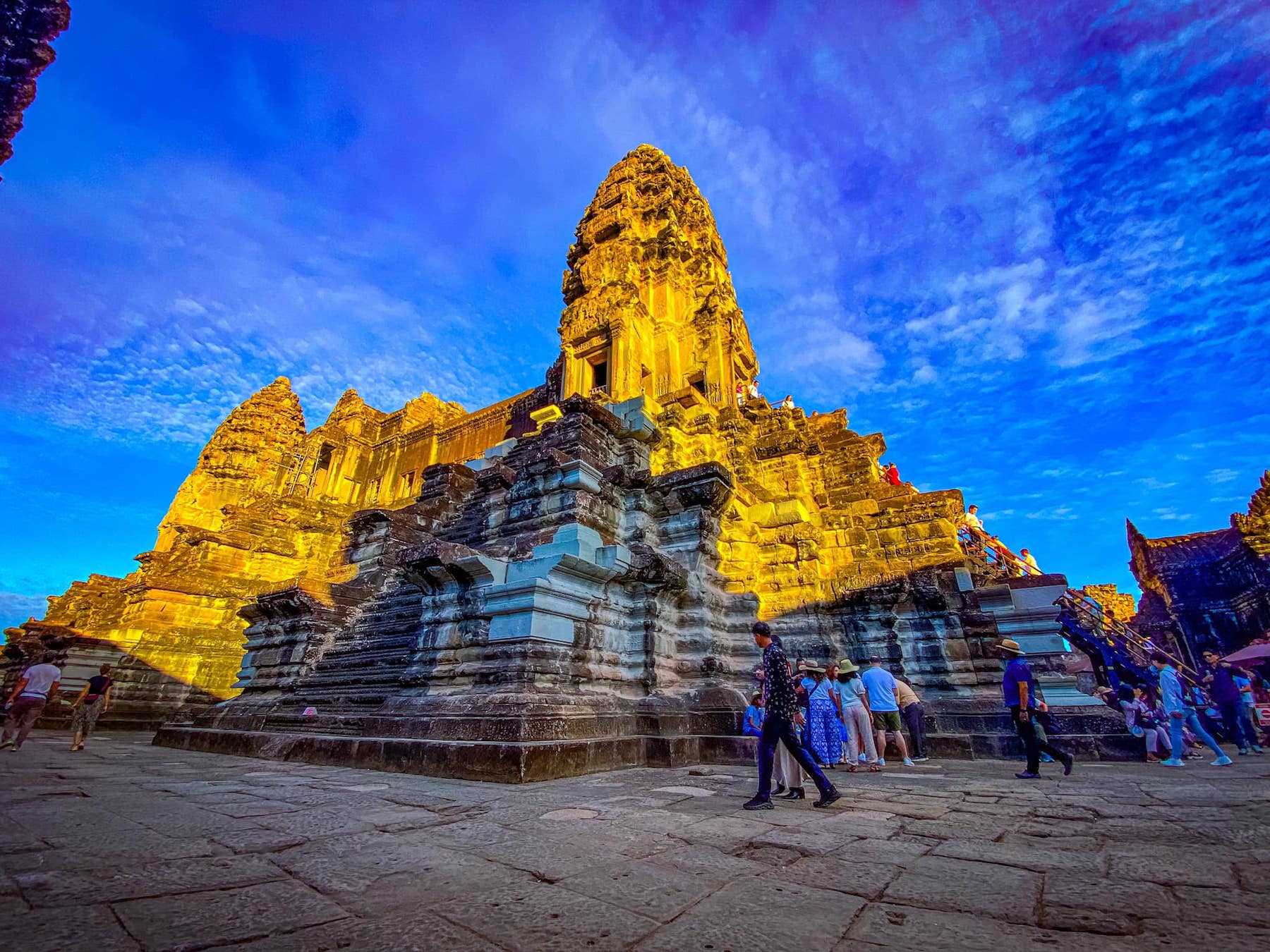 Wisely rise for the indulgent escape and sunrise to the World heritage Angkor Wat, feeding yourself with breakfast catered and served on Royal King Boat, navigated by your own canoeist on the ancient South’s gate moat of Angkor Thom, brief anchor and visit Prasat Chrung before proceeding to jungle-overgrown Ta Prohm and amazed afternoon tours to Angkor Thom, the ex-prosperous city of the Great King Jayavarman VII’s era.